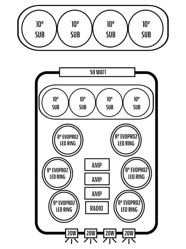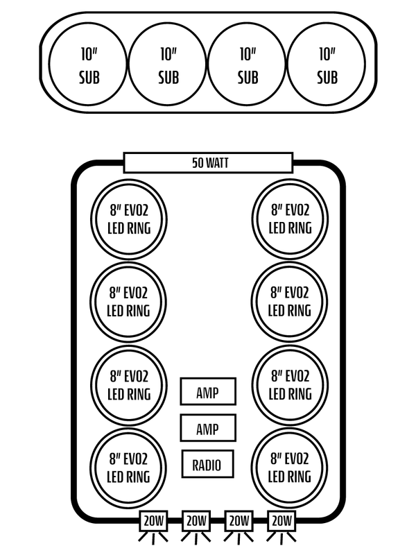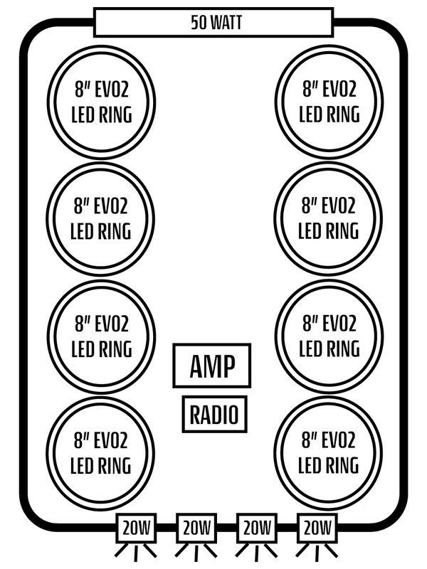 - FOUR AUDIOFORMZ EVOPRO2 8" IC-LED SPEAKERS WITH IC-LED SPEAKER RINGS