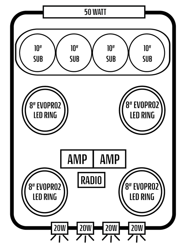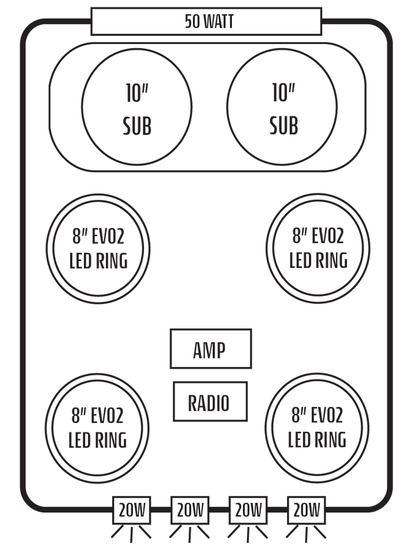 - Customizable Audio Options: Three levels of high-performance speakers and radios to choose from and multiple amplifier options as well as the ability to add up to four 10” subwoofers for a heart-thumping experience