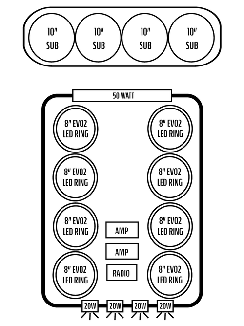 - FOUR AUDIOFORMZ EVOPRO2 8" IC-LED SPEAKERS WITH IC-LED SPEAKER RINGS