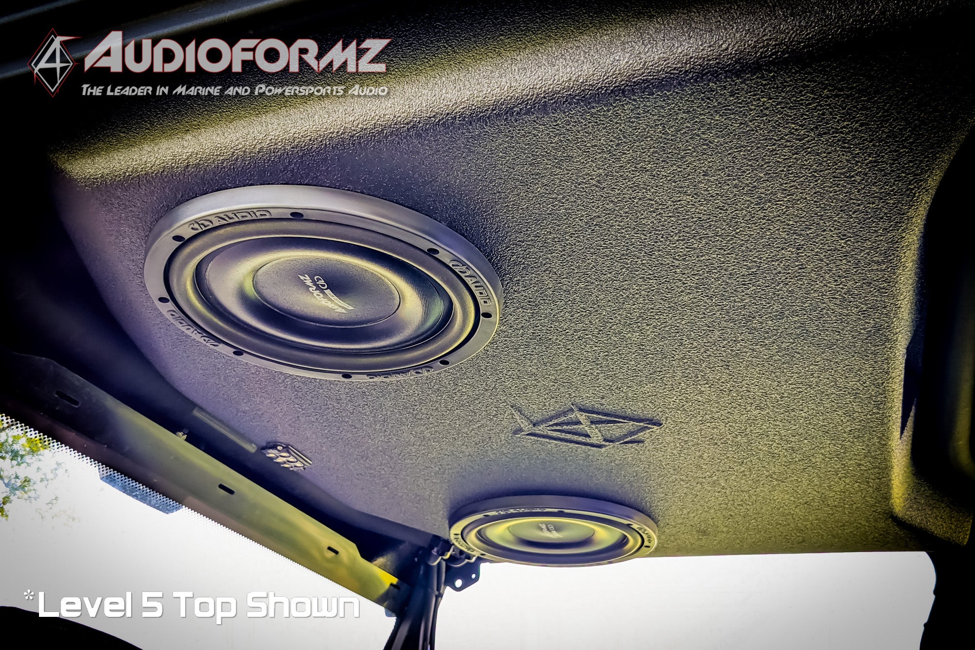 - Customizable Audio Options: Three levels of high-performance speakers and radios to choose from and multiple amplifier options as well as the ability to add up to two 10” subwoofers for a heart-thumping experience