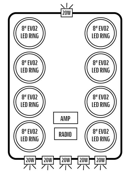 - EIGHT AUDIOFORMZ EVO2 8" IC-LED SPEAKERS WITH IC-LED SPEAKER RINGS