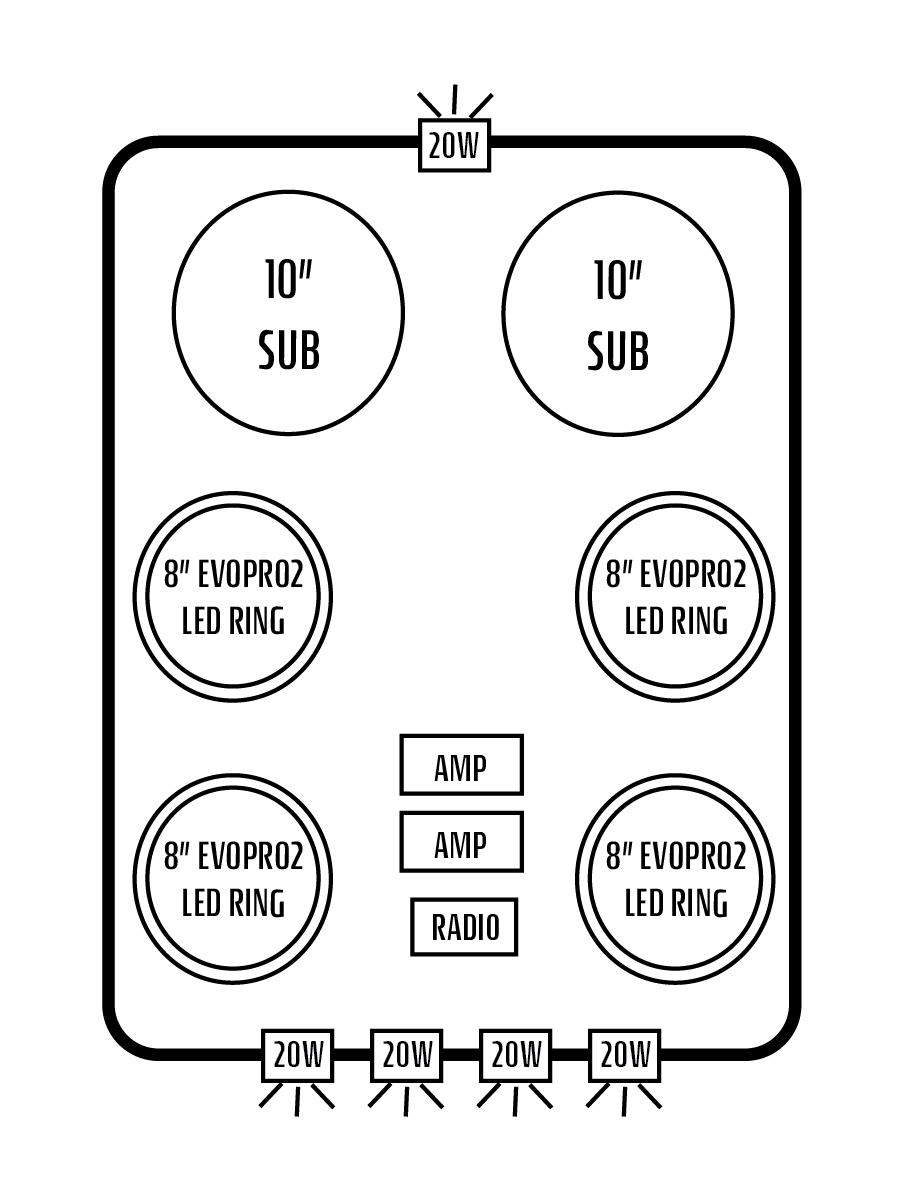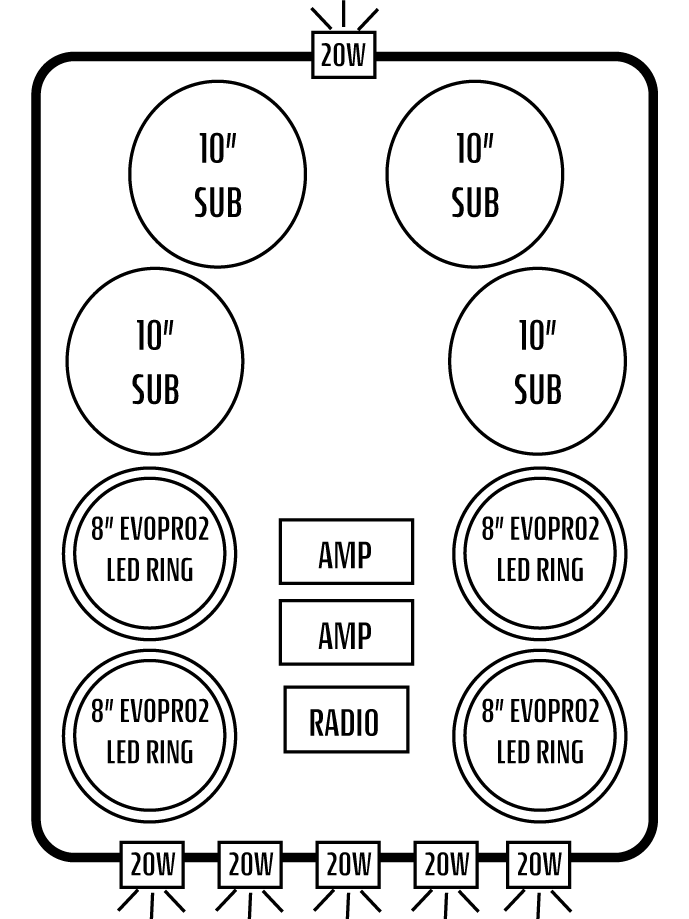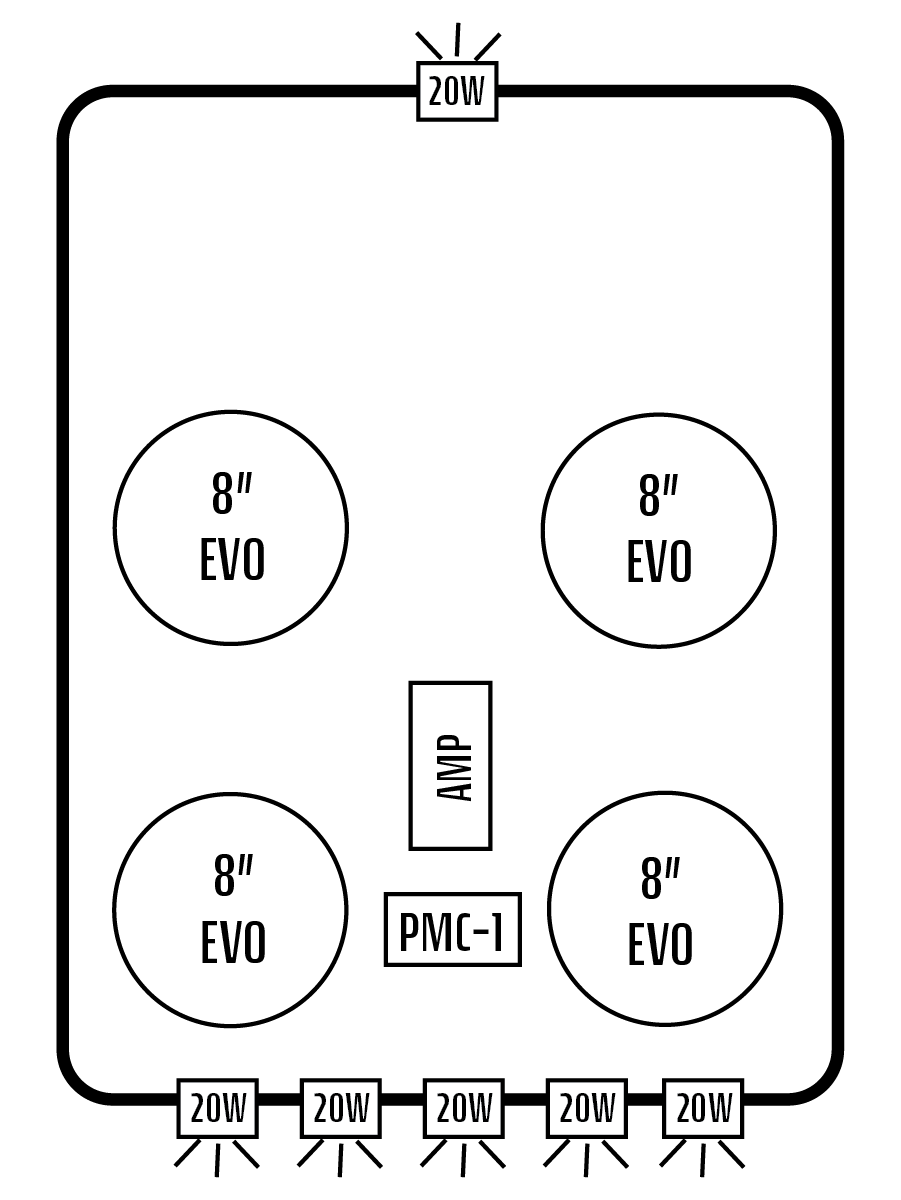 - FOUR AUDIOFORMZ EVO 8" SPEAKERS