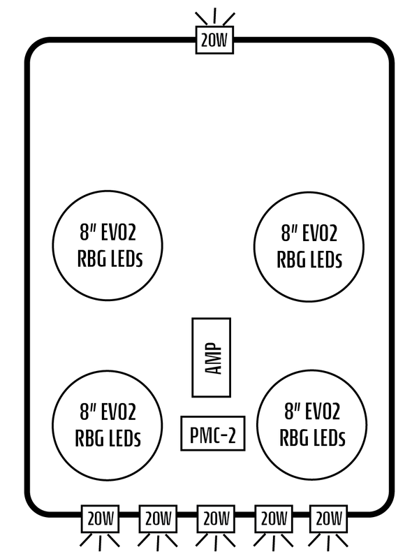 - FOUR AUDIOFORMZ EVO PRO2 8" IC-LED SPEAKERS WITH IC-LED SPEAKER RINGS