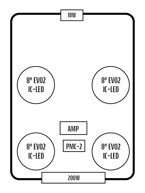 - FOUR AUDIOFORMZ EVO 8" IC-LED SPEAKERS WITH IC-LED CONTROLLER (APP) AND REMOTE