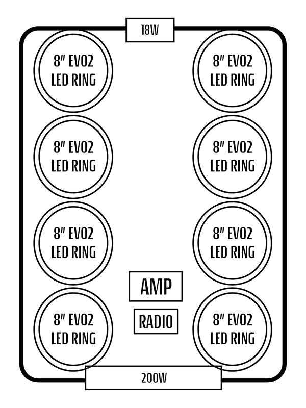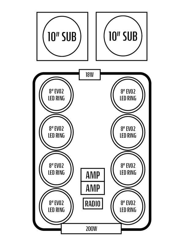- FOUR AUDIOFORMZ EVO2 8" IC-LED SPEAKERS WITH IC-LED SPEAKER RINGS