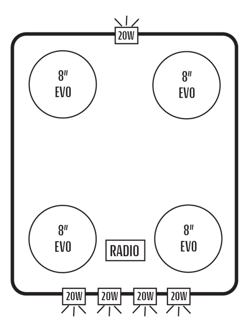 Purposely designed as a high performance entry level speaker with an emphasis on efficiency and lower to midbass performance. Our 8EVO is an UTV/ Marine grade speaker system with a 2-way 8" component speaker and 1” titanium bridge mount tweeter.