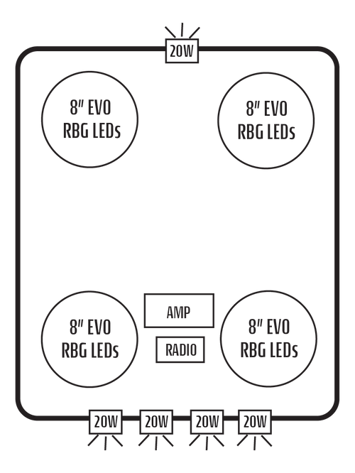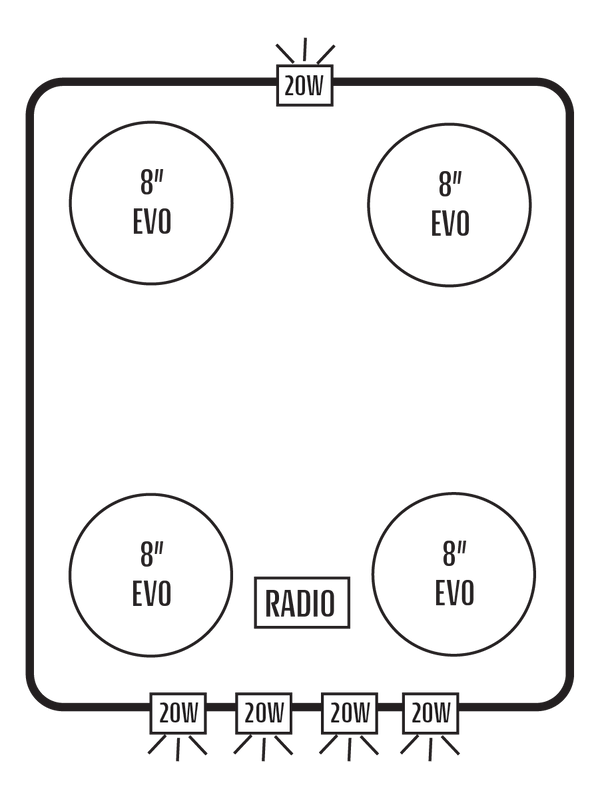 • Now comes standard with our new EVO marine and powersport speakers with built in IC LED lights and 1" Titanium tweeters! Add our optional patented IC Led light rings for more custom lighting!