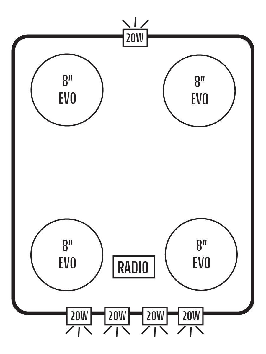 Purposely designed as a high performance entry level speaker with an emphasis on efficiency and lower to midbass performance. Our 8EVO is an UTV/ Marine grade speaker system with a 2-way 8" component speaker and 1” titanium bridge mount tweeter.