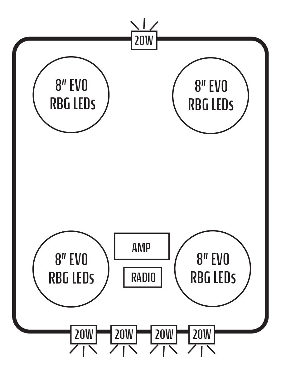 • Now comes standard with our new EVO marine and powersport speakers with built in IC LED lights and 1" Titanium tweeters! Add our optional patented IC Led light rings for more custom lighting!