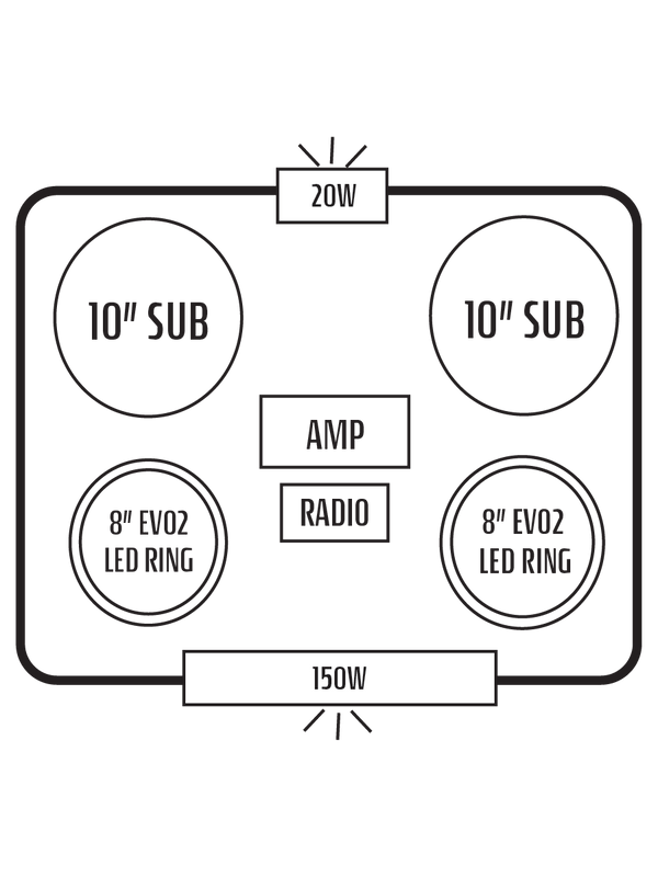 - Customizable Audio Options: Three levels of high-performance speakers and radios to choose from and multiple amplifier options as well as the ability to add up to four 10” subwoofers for a heart-thumping experience