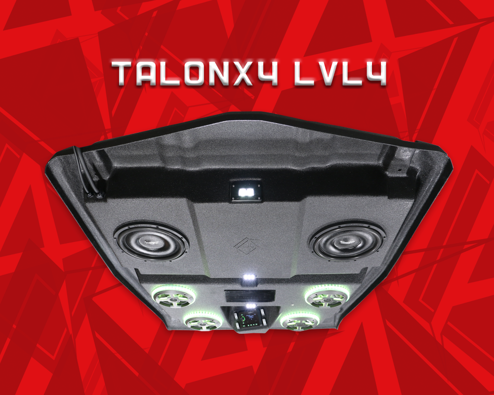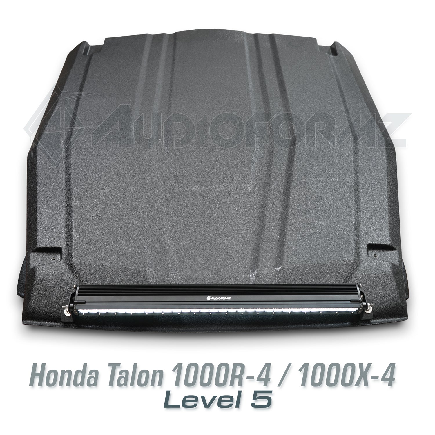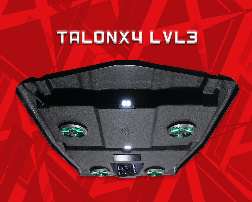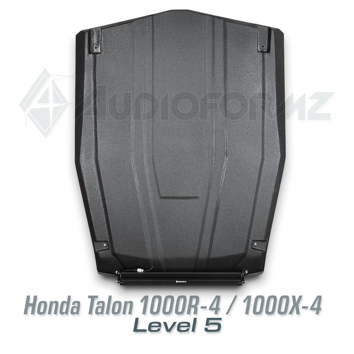 Embrace the excitement of the new Honda Talon 1000R-4/1000X-4/1000XS-4 with AudioFormz's specially designed roof system. This stereo top, tailor-made for the eagerly anticipated 4-seat sport SXS from Honda, not only meets but exceeds expectations in both style and performance. Made from solid hand-laid fiberglass, it is one of the lightest, loudest, and most durable stereo tops on the market, perfectly echoing the Talon's revolutionary design and capabilities.