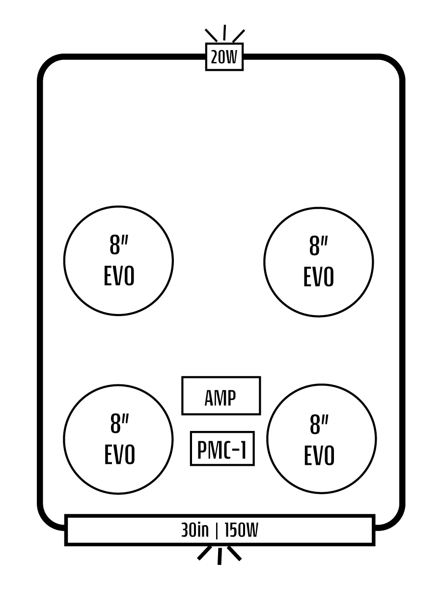 - FOUR EVOPRO2 8" SPEAKERS W/"IC" LED'S