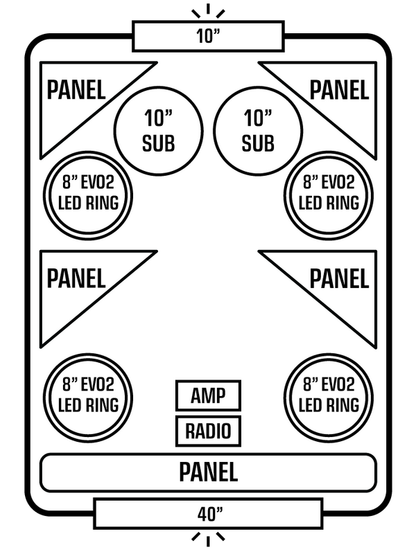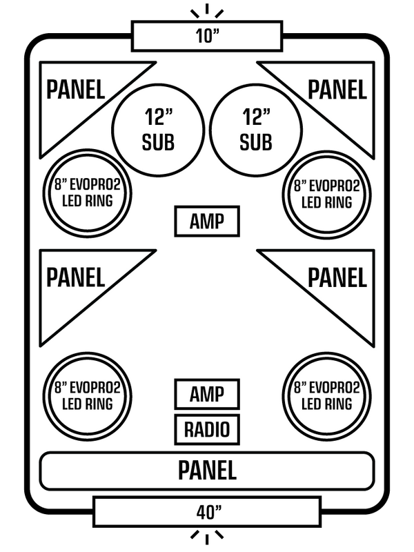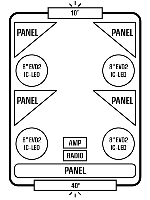 - FOUR INTERIOR AFEVOPRO2 8" SPEAKERS W/"IC LED'S