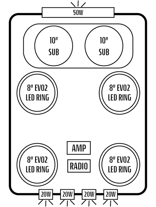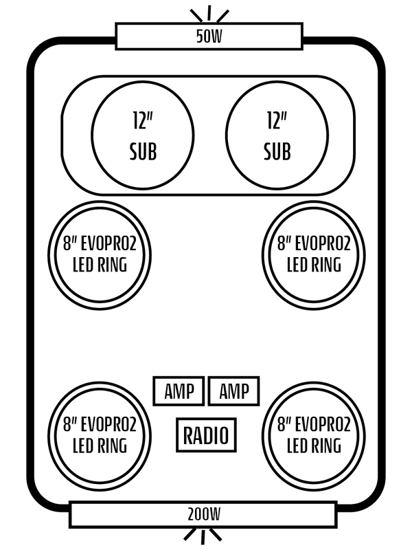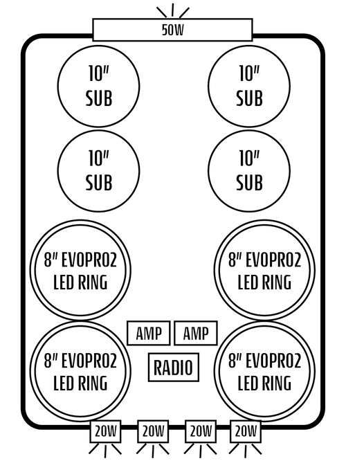 - FOUR INTERIOR AFEVOPRO2 8" SPEAKERS W/"IC-LED'S