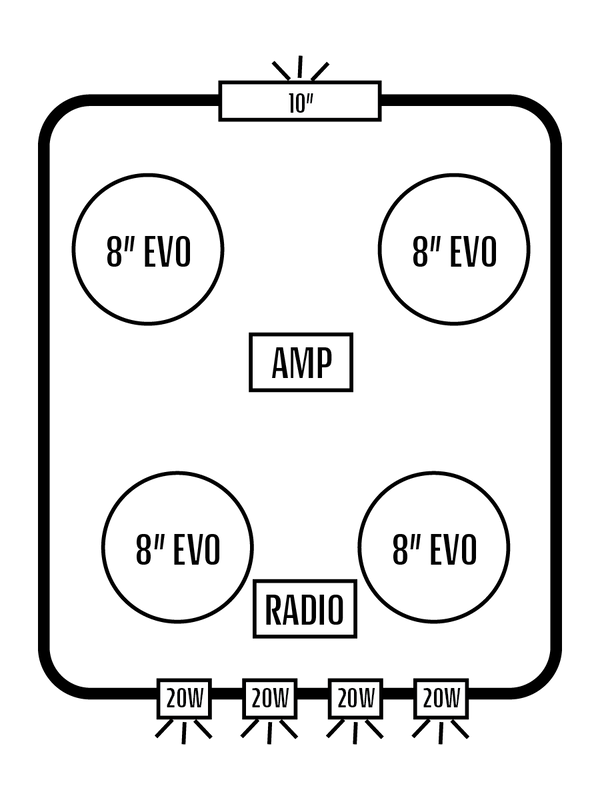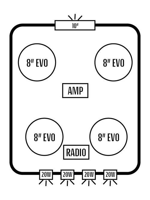 - Customizable Audio Options: Comes with standard EVO speakers, with options to upgrade to 8" EVO2 or EVOPRO2 speakers for a more potent sound.
