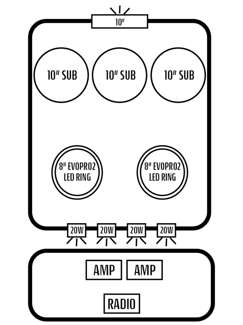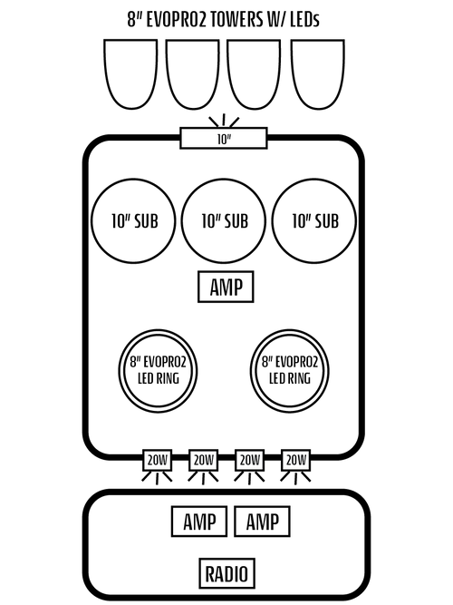- TWO INTERIOR AFEVO2 8" SPEAKERS W/"IC" LED'S
