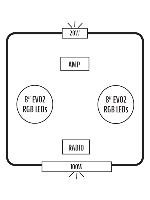 - TWO AFEVO2 8" SPEAKERS W/ "IC" LED'S