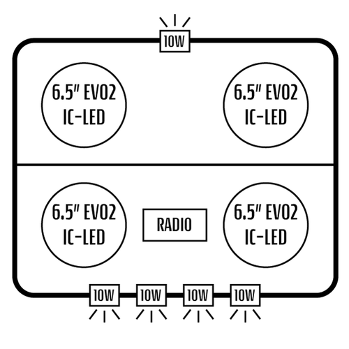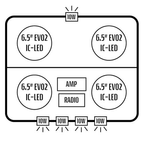 - TWO REAR FIRING AFEVO2 65" SPEAKERS W/"IC" LEDS