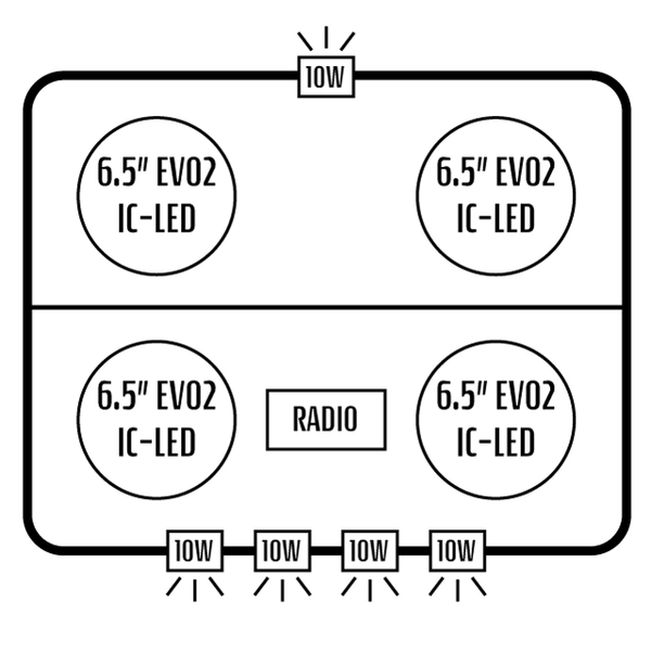 - TWO REAR FIRING AFEVO2 65" SPEAKERS W/"IC" LED