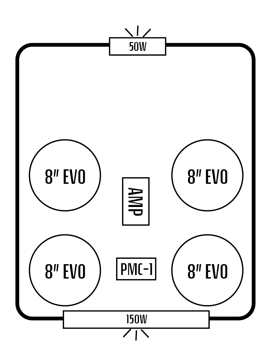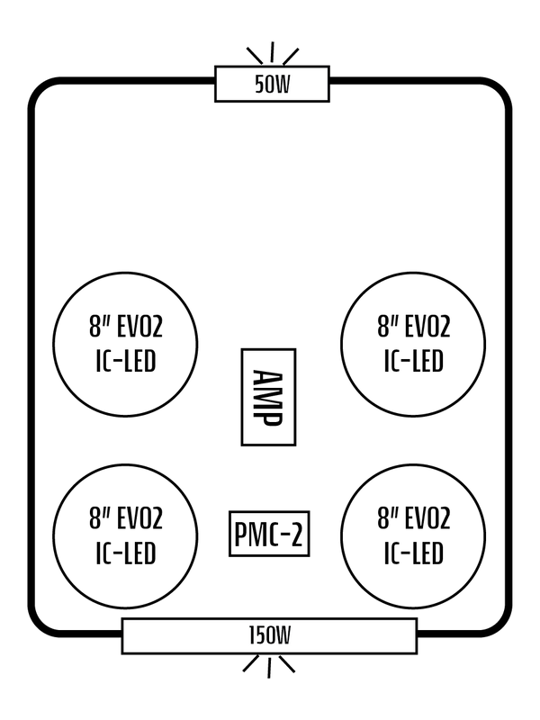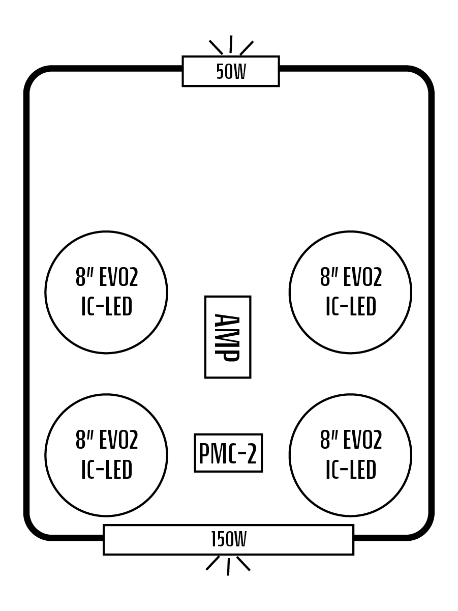 - FOUR INTERIOR AFEVO2 8" SPEAKERS W/ "IC" LED'S