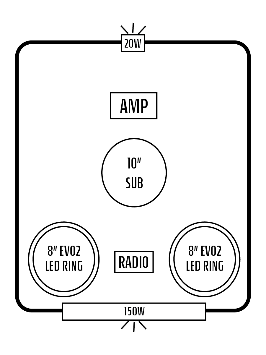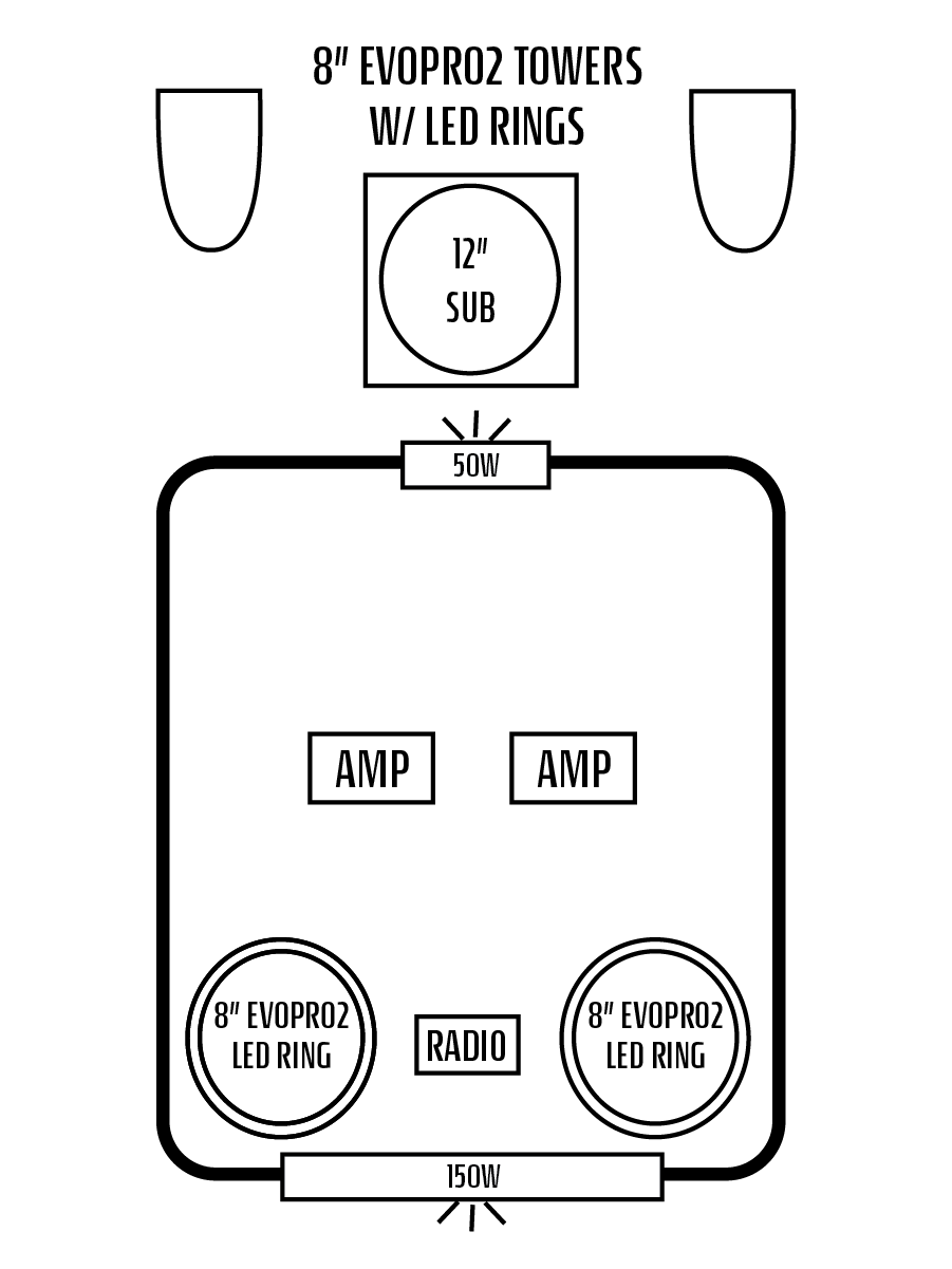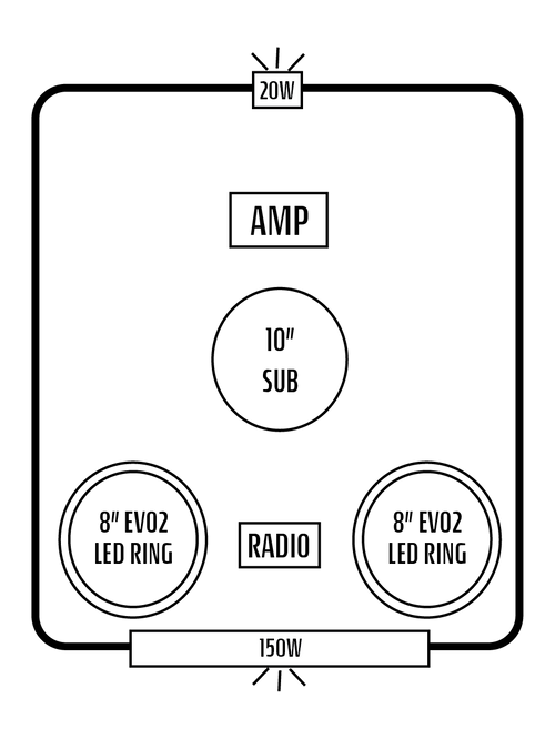 - TWO INTERIOR AFEVOPRO2 8" SPEAKERS W/ "IC" LED'S