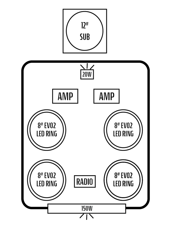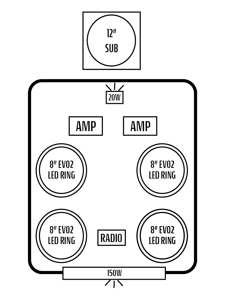 - TWO INTERIOR AFEVO2 8" SPEAKERS W/ "IC" LED'S
