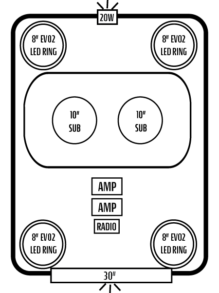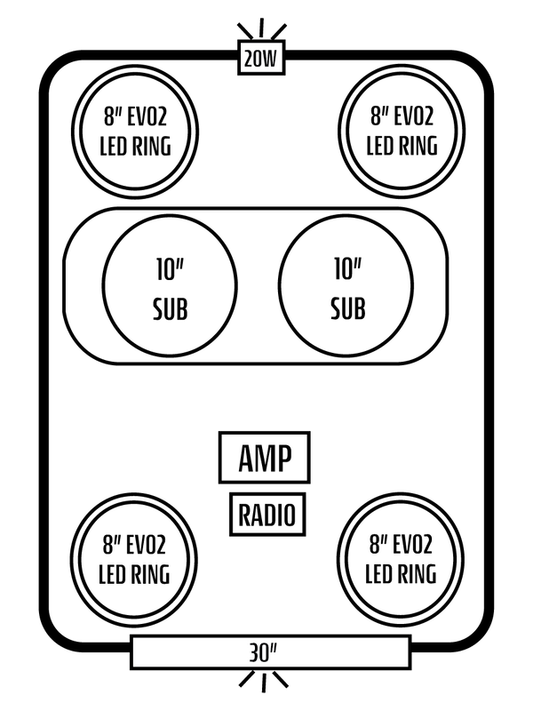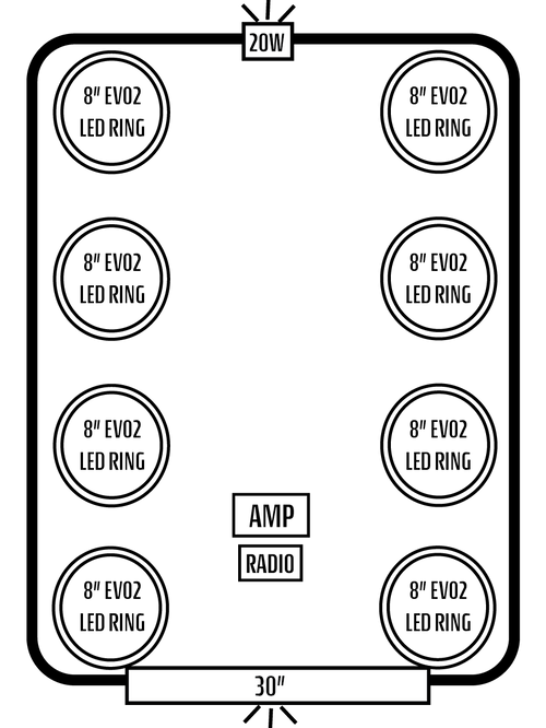 - EIGHT INTERIOR AFEVO2 8" SPEAKERS W/ "IC" LED'S