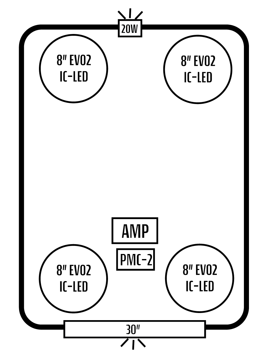 - FOUR INTERIOR AFEVO2 8" SPEAKERS W/ "IC" LED'S