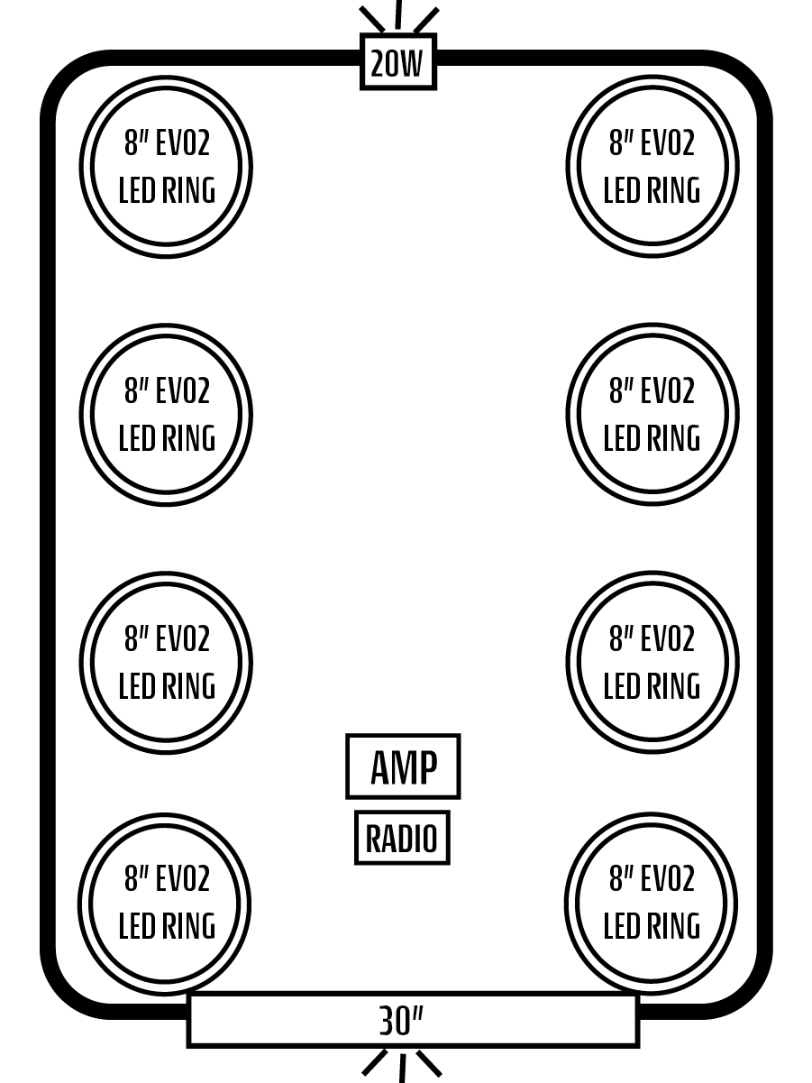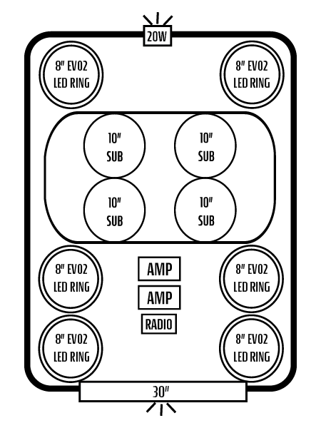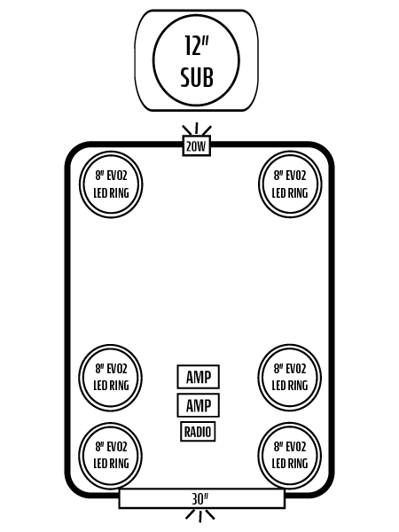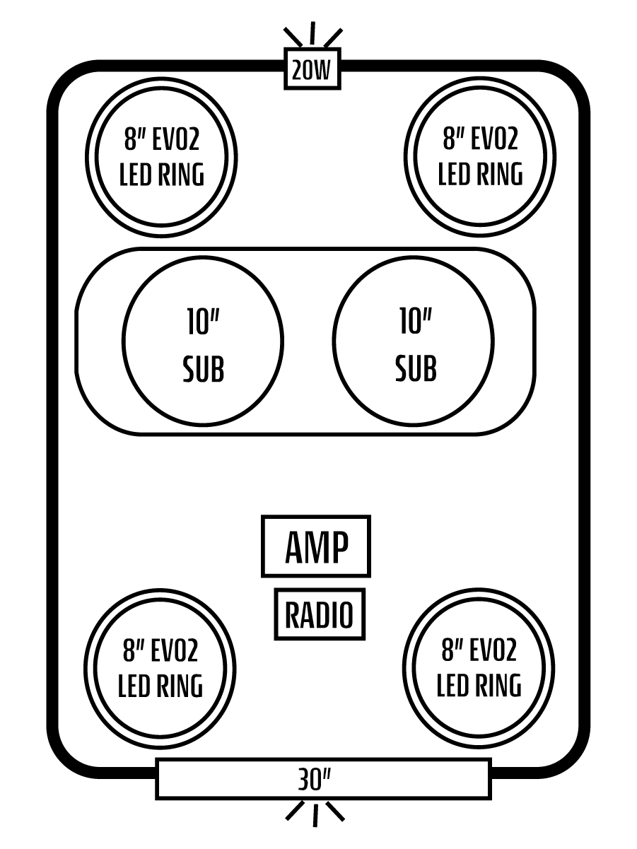 - EIGHT INTERIOR AFEVO2 8" SPEAKERS W/ "IC" LED'S