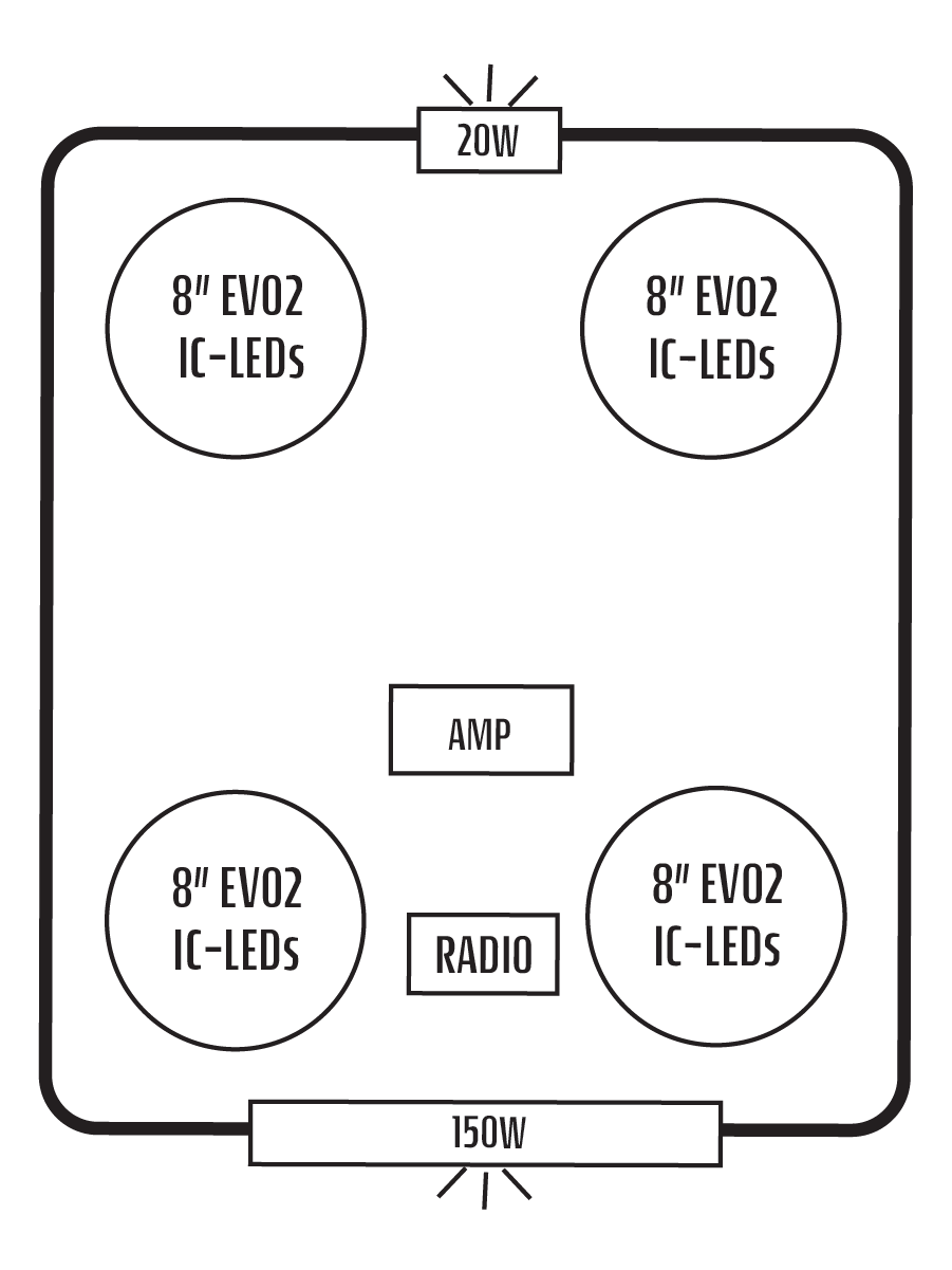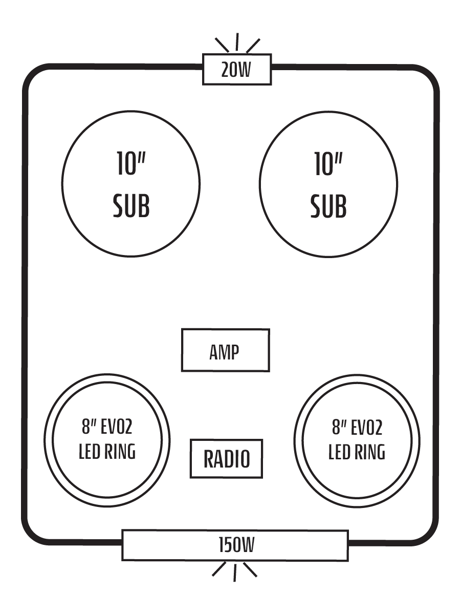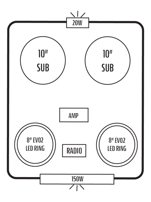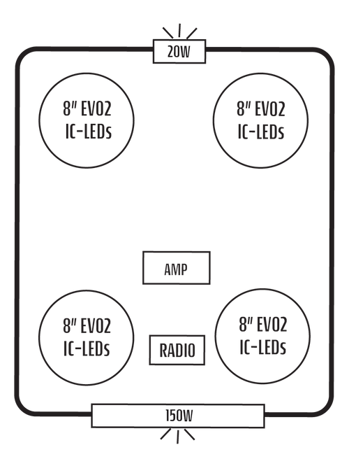 - TWO INTERIOR AFEVO2 8" SPEAKERS W/ "IC" LED'S