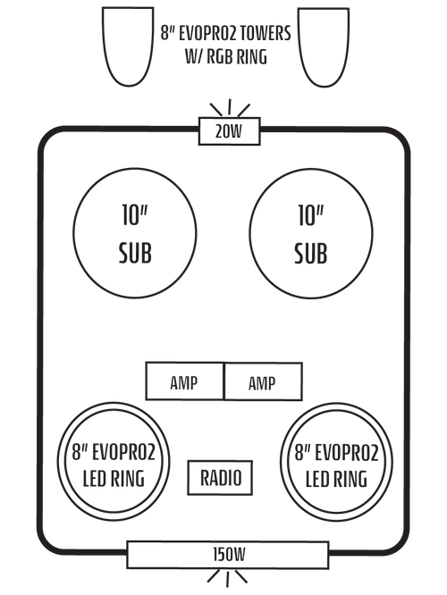 - TWO INTERIOR AFEVOPRO2 8" SPEAKERS W/ "IC" LED'S