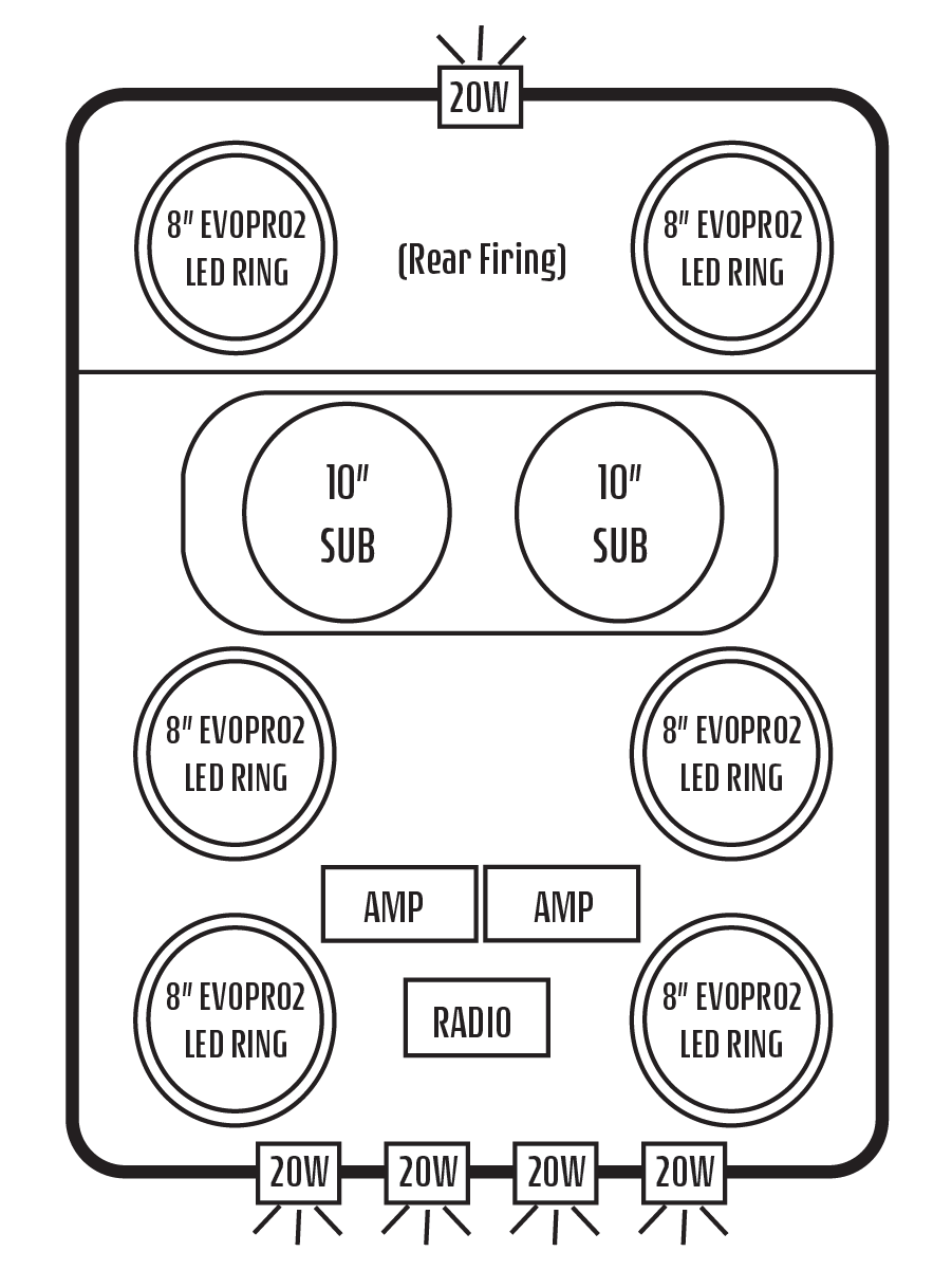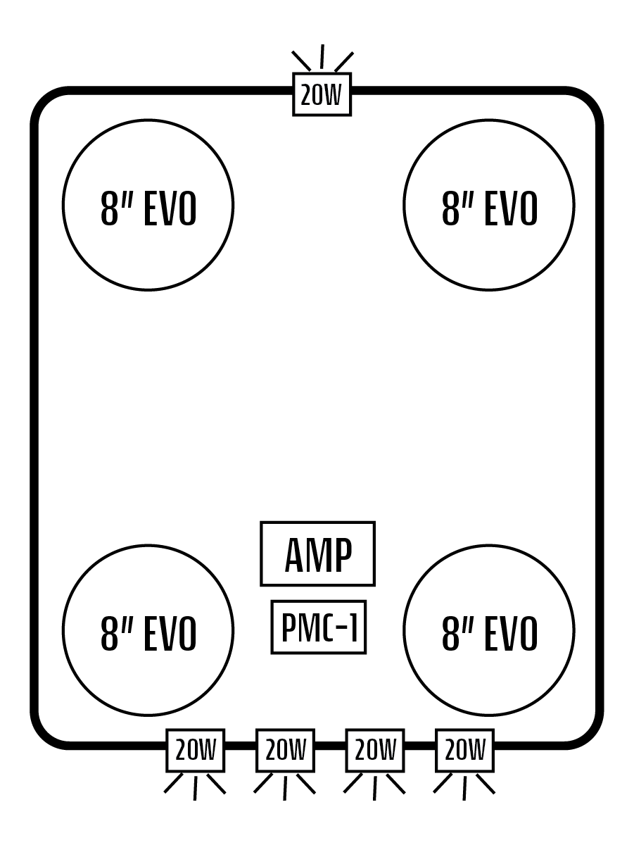 - FOUR AUDIOFORMZ EVO 8" SPEAKERS
