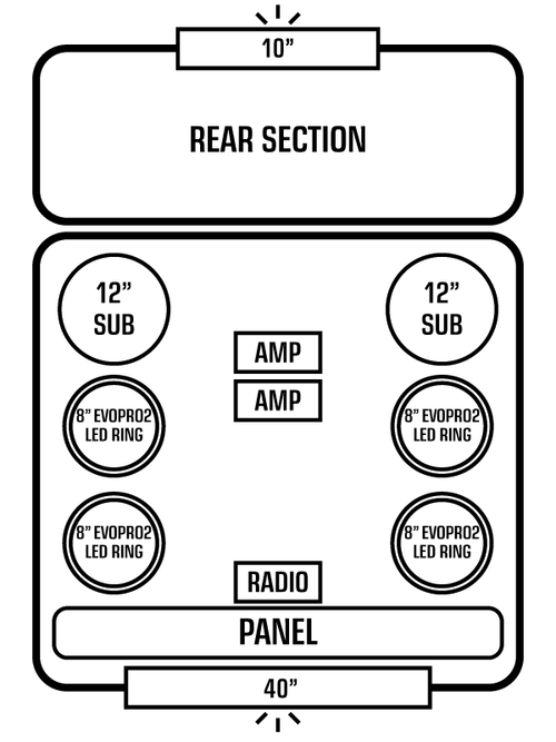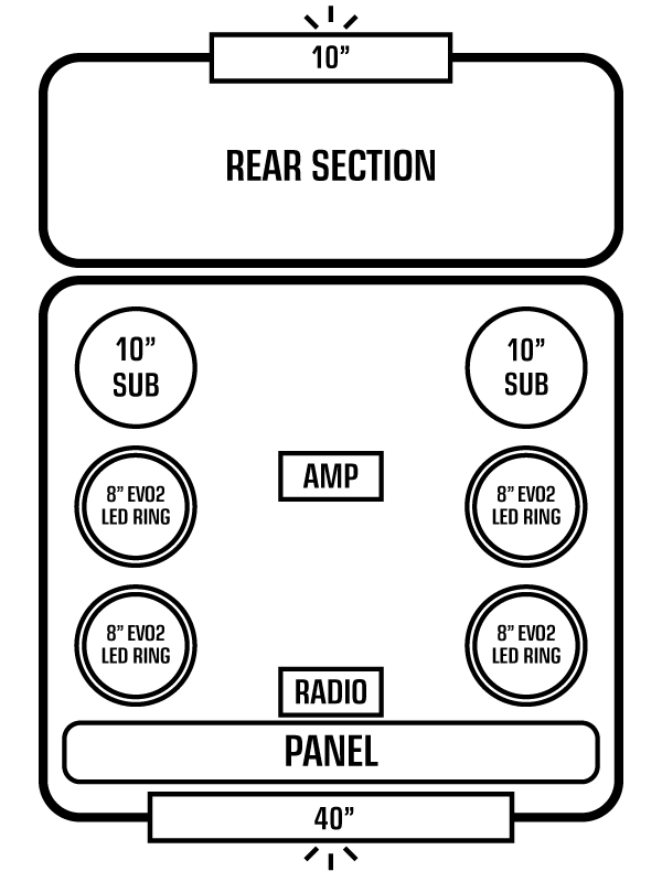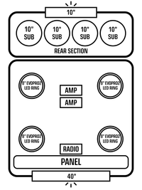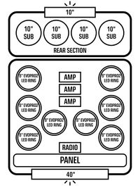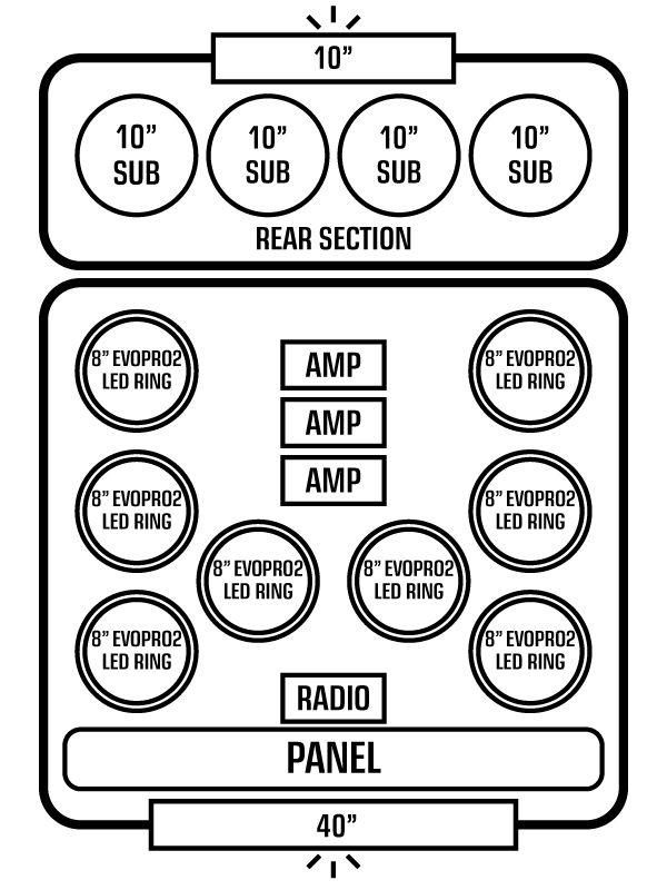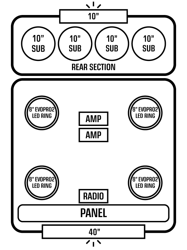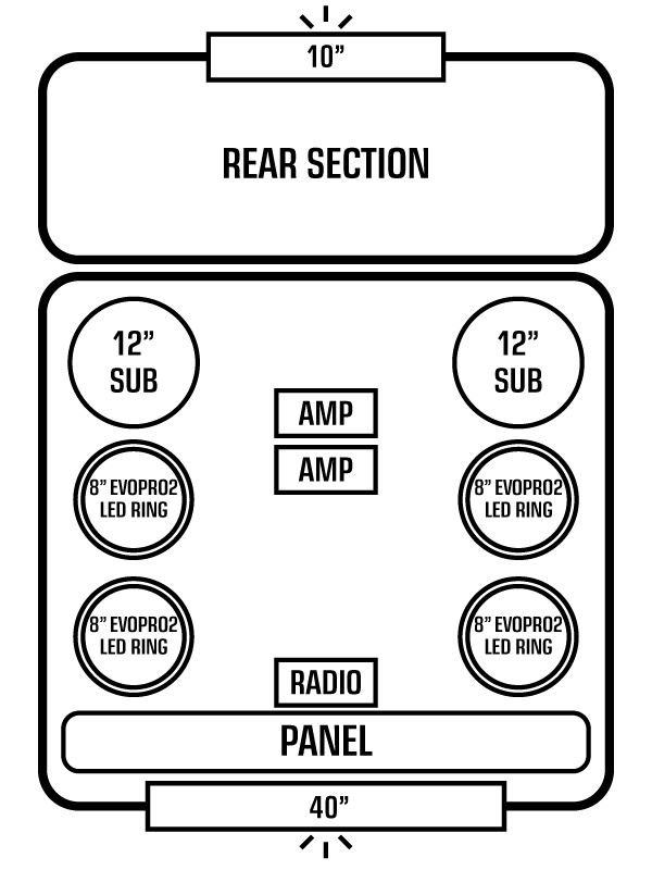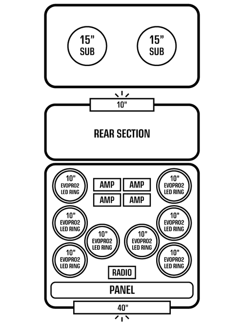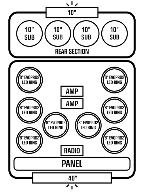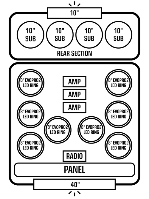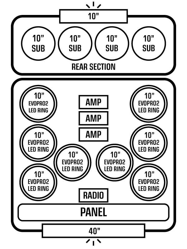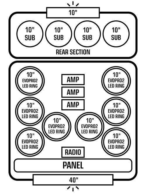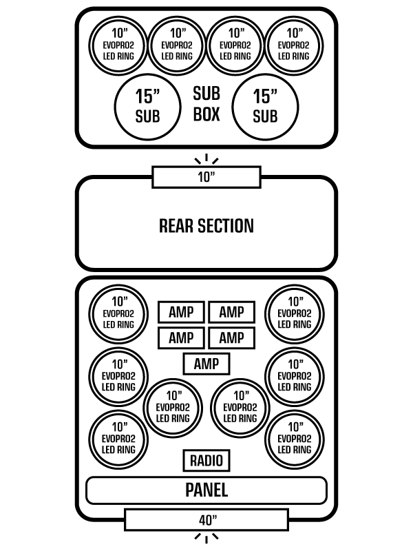 - PORTED SUB BOX WITH FOUR AFEVOPRO2 10" SPEAKERS W/ IC LED'S AND TWO 15” SUBWOOFERS