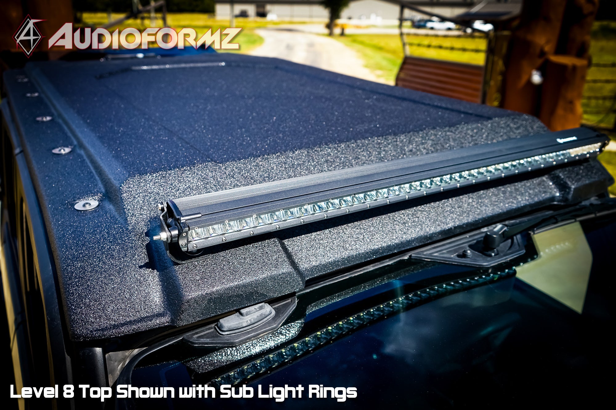 AudioFormz stereo tops don’t just perform—they shine. With integrated LED lighting and optional upgrade packages, you can illuminate the night and match your setup to your mood. From color-changing effects that sync with your music to front-facing work lights and rear cargo illumination, you’ll have complete control over the vibe. Add in our premium components, custom configurations, and full warranty, and you’ve got a roof system built to outlast and outperform every ride.
