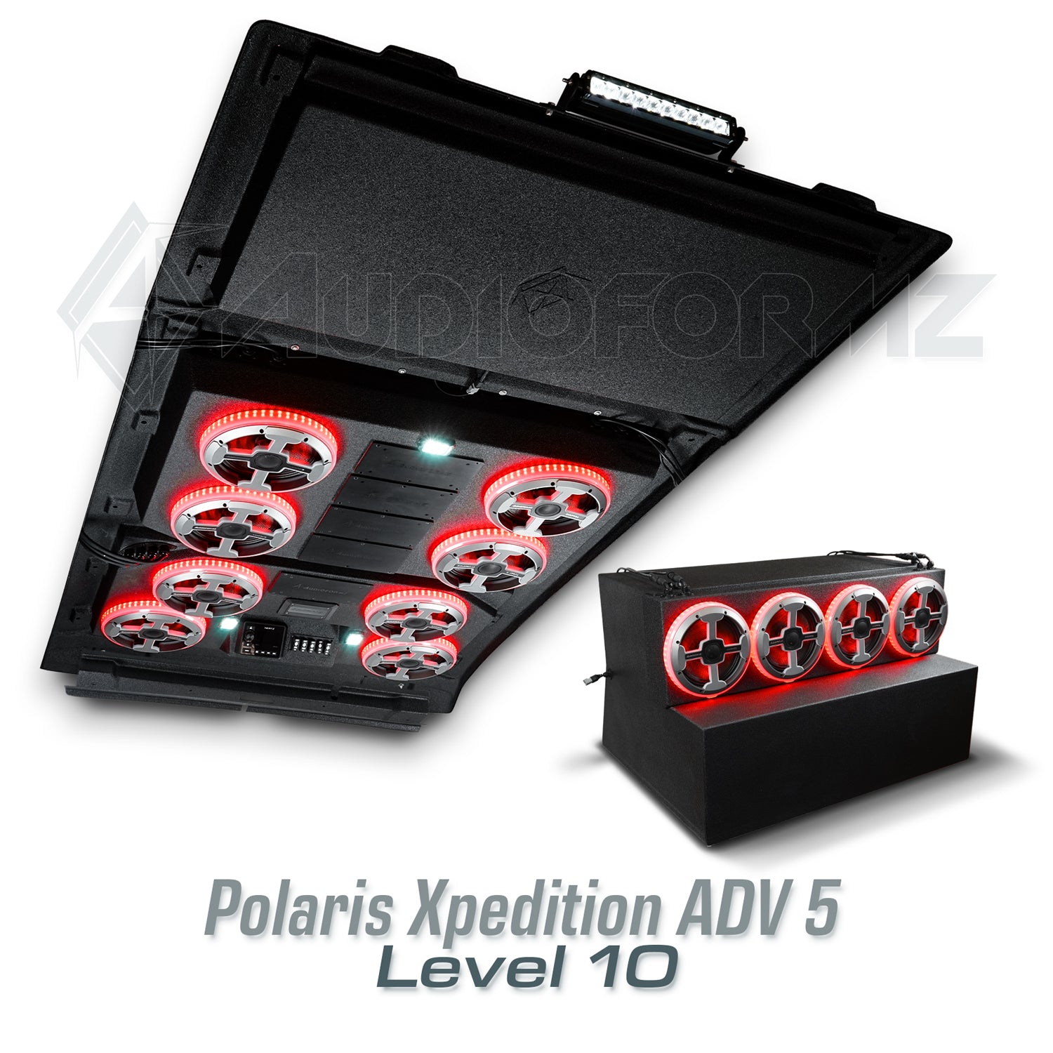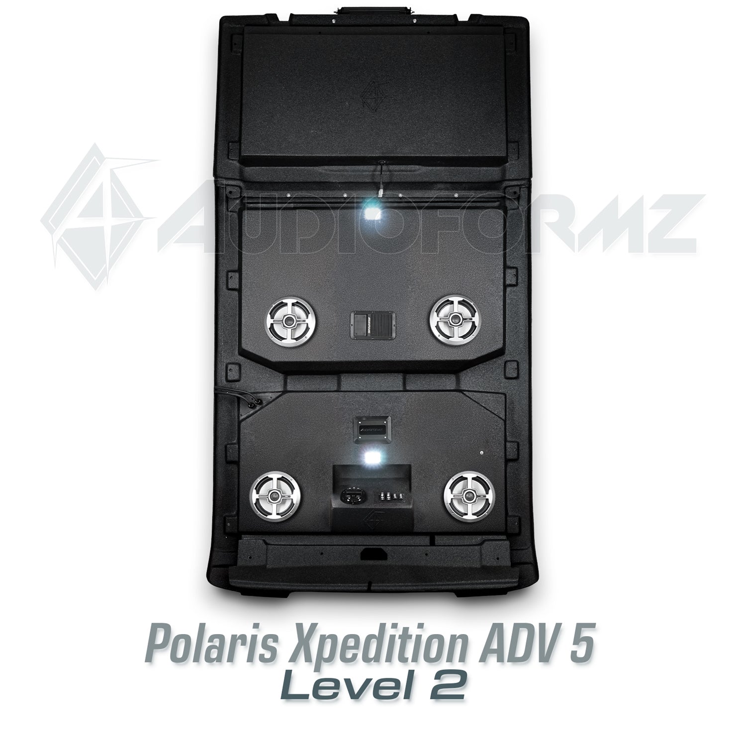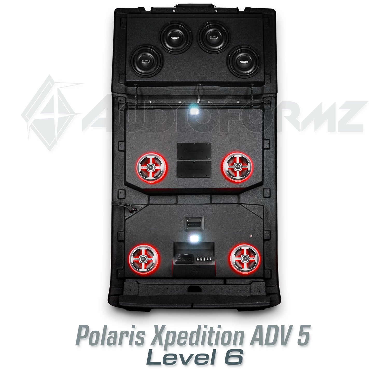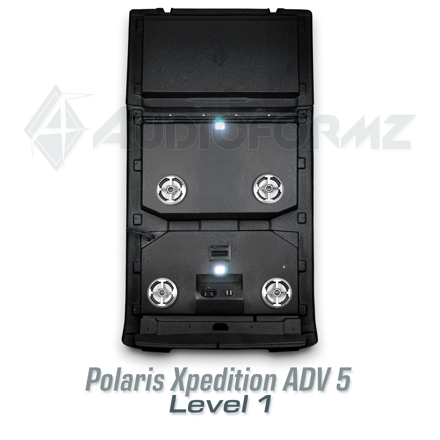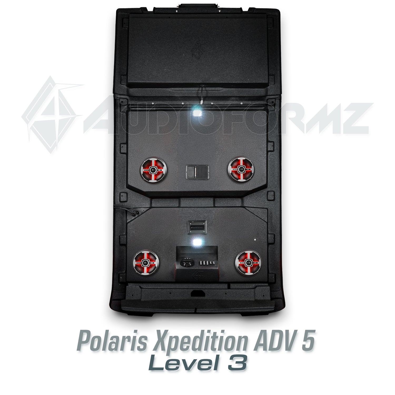 Transform every adventure with the ultimate stereo top designed specifically for the Polaris Xpedition ADV 5. Built for riders who demand premium sound and rugged protection, this system turns your ADV into a rolling entertainment hub—perfect for long hauls, backcountry exploration, or setting up camp in style. With an enclosed cargo area instead of an open bed, the ADV platform gives you even better acoustics and all-weather performance, taking the AudioFormz experience to the next level.