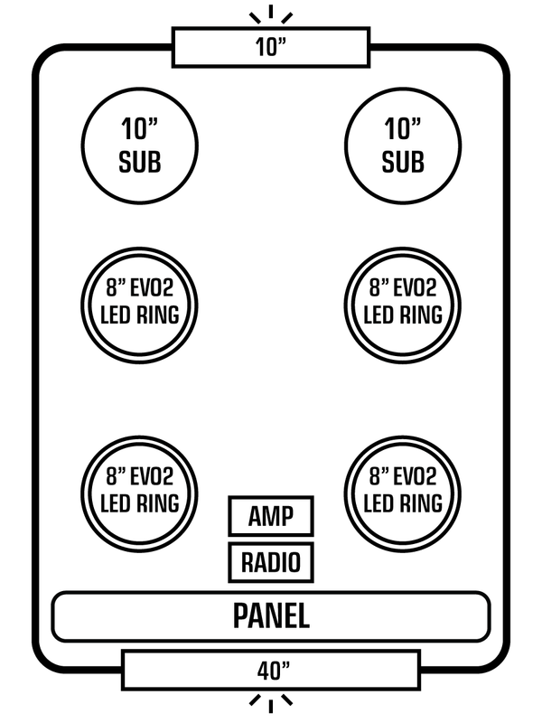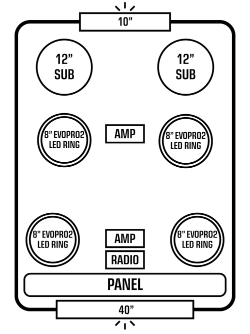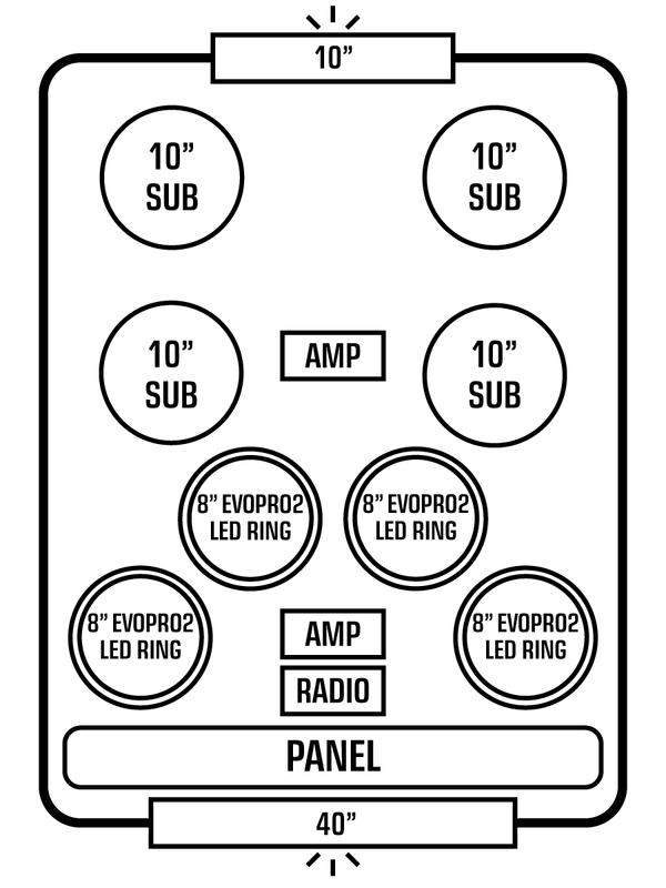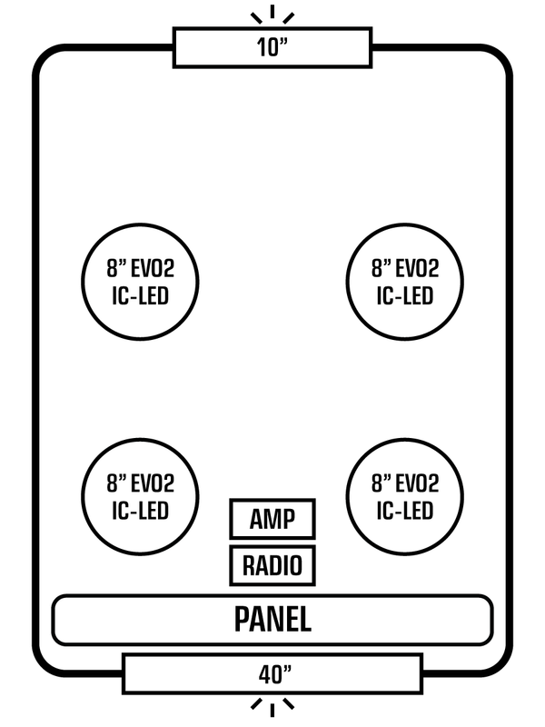 - FOUR INTERIOR AFEVOPRO2 8" SPEAKERS W/"IC LED'S