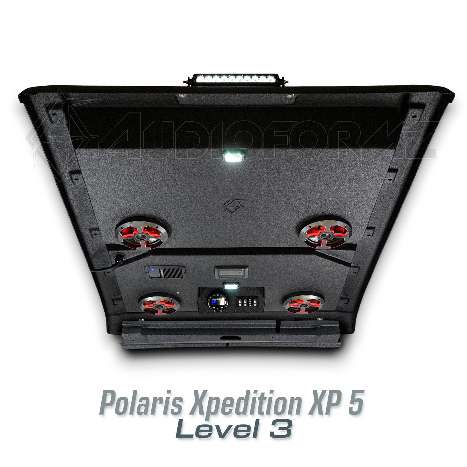 Turn every ride into an unforgettable adventure by outfitting your Polaris Xpedition XP 5 with the ultimate stereo top from AudioFormz. Engineered exclusively for the Xpedition platform, this system transforms your UTV into an all-in-one entertainment hub. Whether you’re cruising the trails, exploring backcountry routes, or just hanging out at camp, you’ll enjoy crisp, powerful sound without sacrificing comfort or protection.