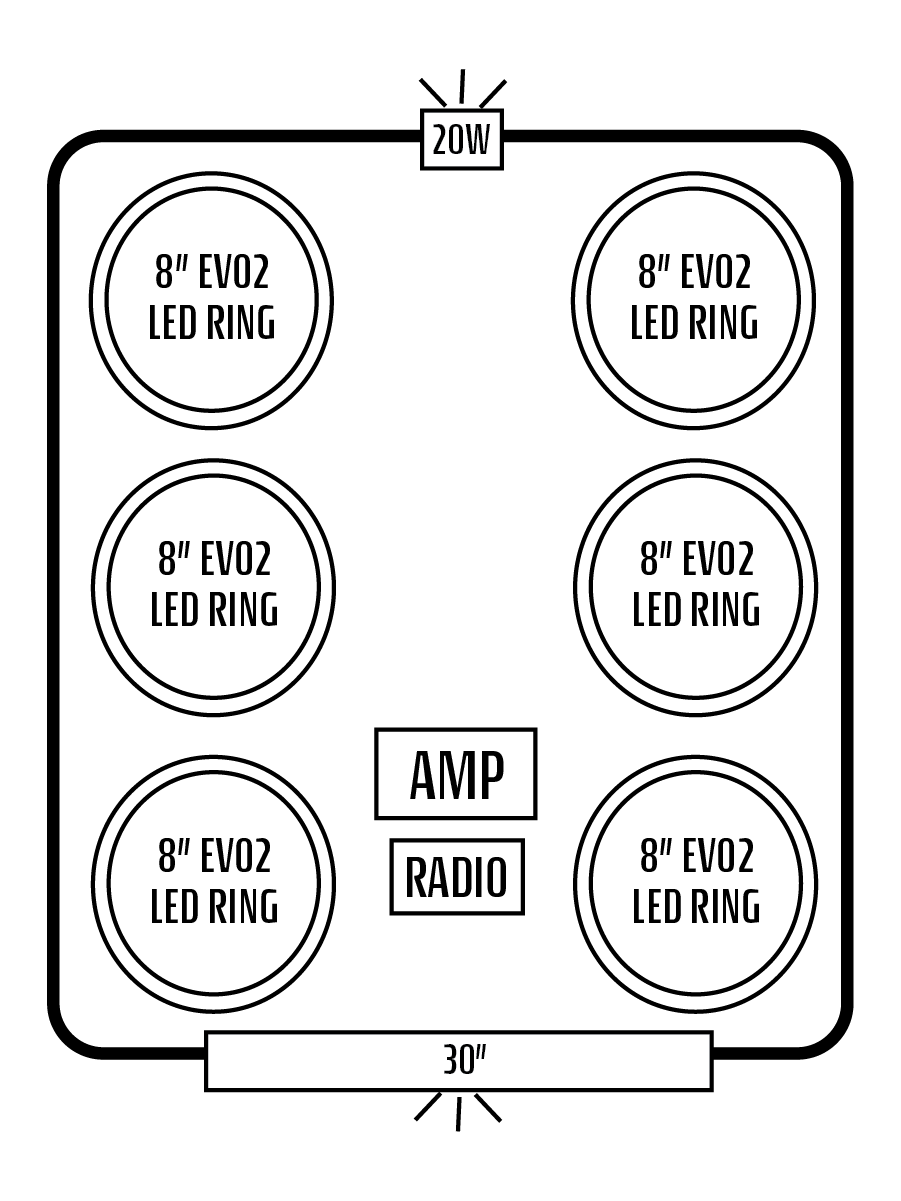 - SIX INTERIOR AFEVO2 8" SPEAKERS W/ "IC" LED'S