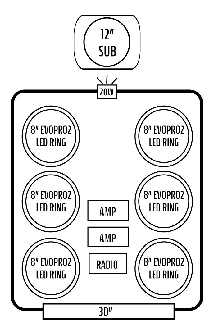 - SIX INTERIOR AFEVOPRO2 8" SPEAKERS W/ "IC" LED'S