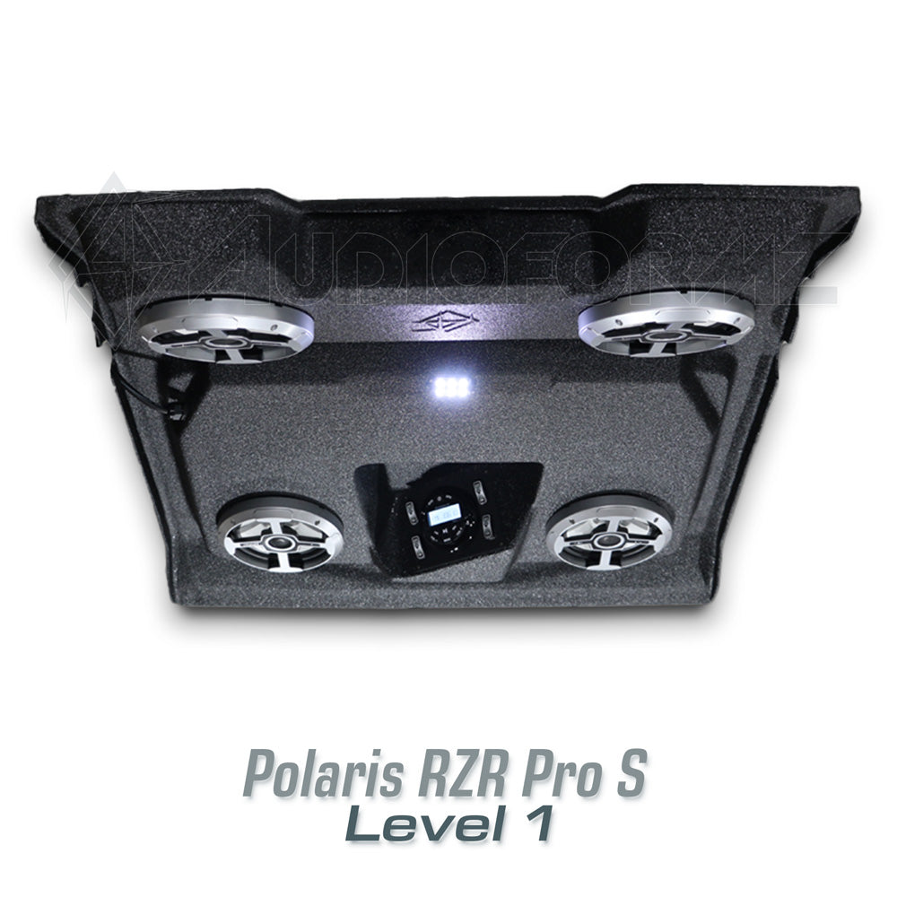 Redefine your off-road experience with the AudioFormz stereo top for the new Polaris RZR PRO S. As the latest and most visually striking sport machine from Polaris, it deserves a roof system that matches its performance and style. The AudioFormz roof sets new standards in sound and aesthetics, featuring our most aggressive molded design yet.
