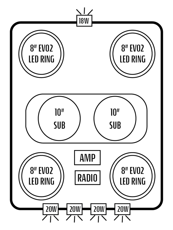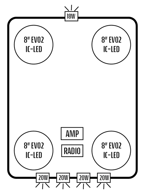 - FOUR AFEVO2 8" SPEAKERS W/ "IC" LED'S